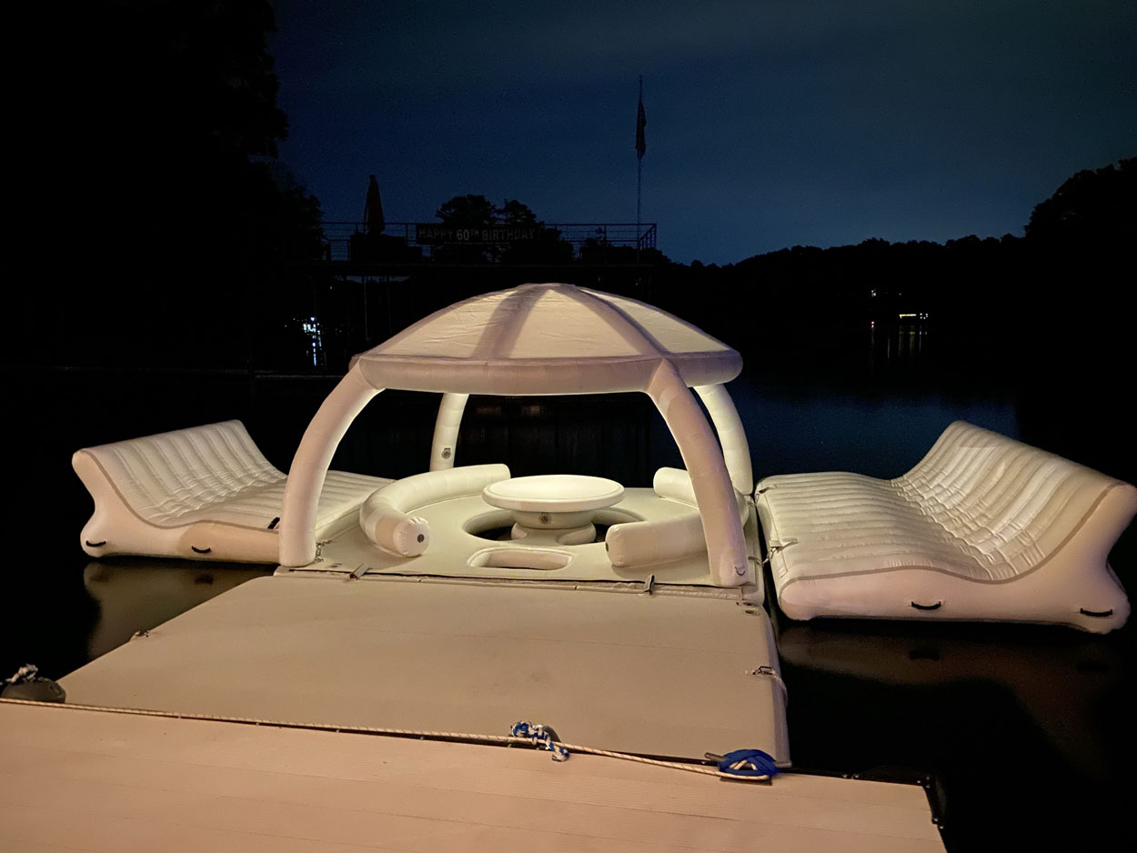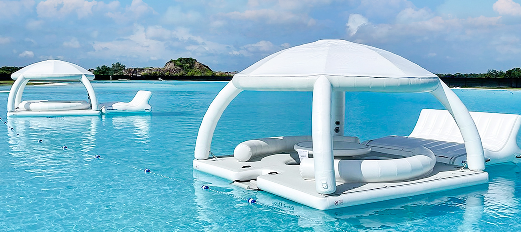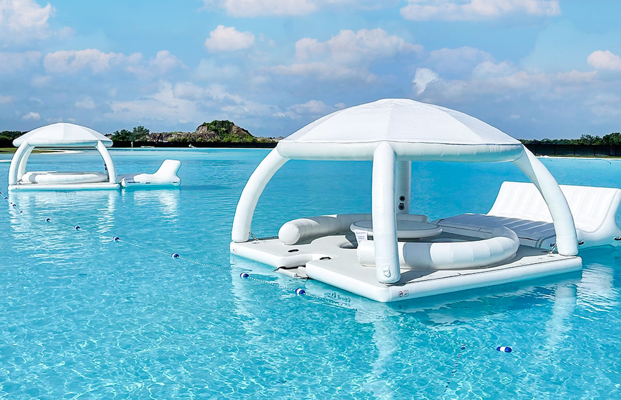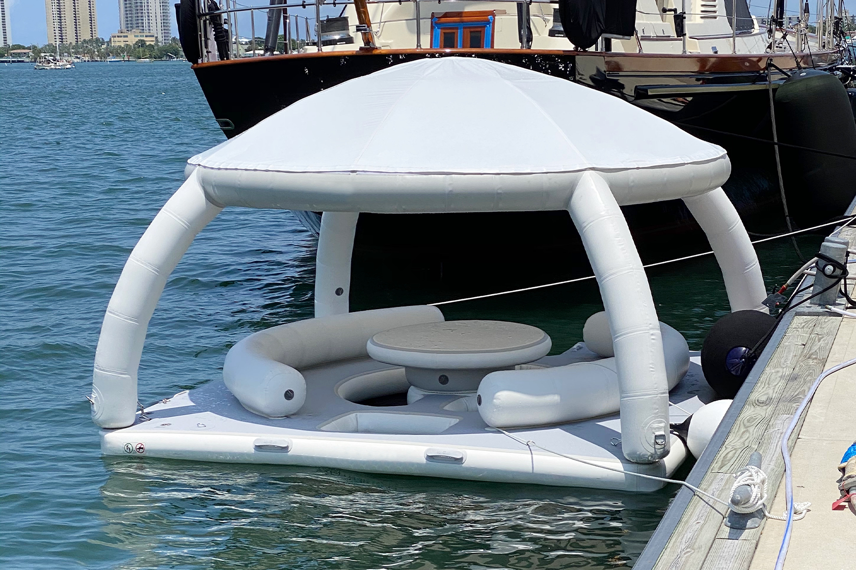 Το Cabana Island τραβά την προσοχή από οπουδήποτε στο νερό. Η γρήγορη πρόσβαση και η αντιολισθητική επιφάνεια διευκολύνουν άτομα κάθε ηλικίας να επιβιβαστούν και να μετακινηθούν γύρω του. Μπορεί να λειτουργήσει σε μόλις 50εκ νερού και να προσφέρει εκπληκτική σκιά όταν συνδυάζεται με τη σκηνή.