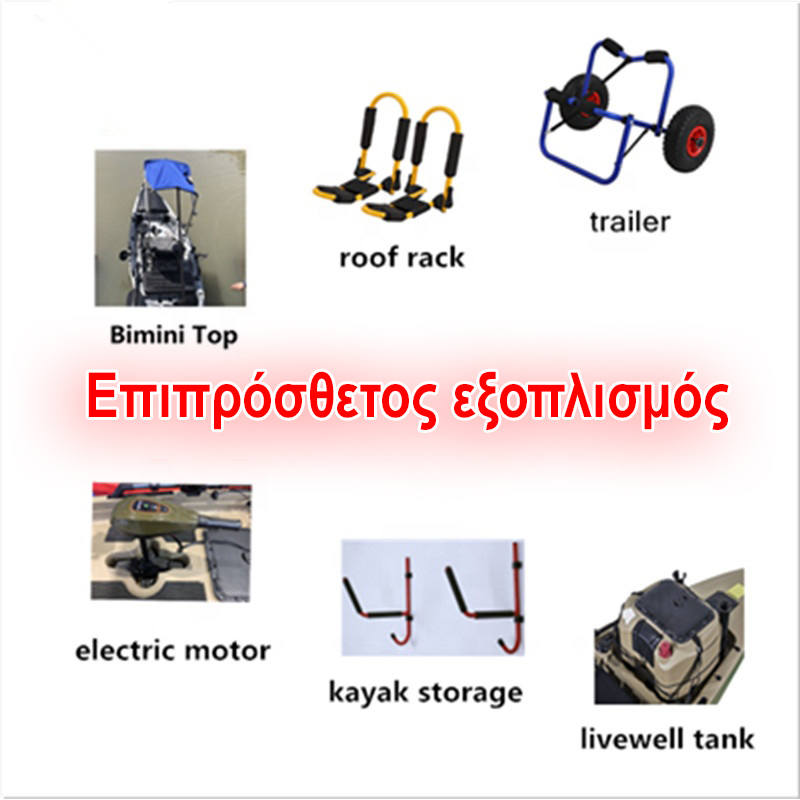 Εύκολα ανασυρόμενο / αφαιρούμενο στήριγμα Πεντάλ με εύκαμπτα πτερύγια 6.0m2 ιστιοφόρο με ιστούς δύο τεμαχίων Καρέκλα ψαρέματος με πλαίσιο αλουμινίου Κουπιά δύο τεμαχίων Πλήρες σύστημα πηδαλίου Ενσωματωμένο, πλήρως ανασυρόμενο, κεντρικό πίνακα Όλο το υλικό καλωδίωσης και ιστιοπλοΐας Μεγάλη μπροστινή πόρτα αποθήκευσης Πίσω χώρος φορτίου με bungee Δύο αδιάβροχες πόρτες σφράγισης 8'' Βάση ποτηριού Λαβές μεταφοράς Περιλαμβάνονται πολλαπλά βύσματα και κουμπιά |