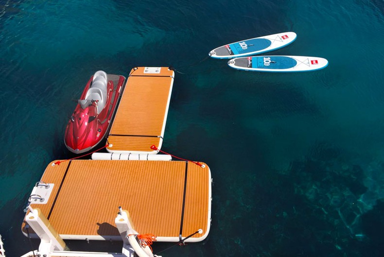 Ασύγκριτη πολυτέλεια στη θάλασσα. Ένα μοναδικό μέρος για να μοιραστείτε και να απολαύσετε στιγμές της ζωής σας, ενώ χαλαρώνετε με άνεση σε μία από τις εξέδρες μας. Προσφέροντας ελευθερία από τους περιορισμούς του σκάφους σας, σε ένα νέο διαμορφωμένο χώρο που είναι τέλειος για ηλιοθεραπεία, η εύρεση εκείνη της στιγμής γαλήνης σας κάνει να απολαμβάνετε τον ήλιο.
