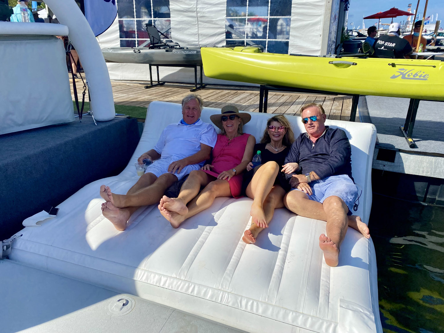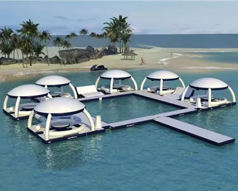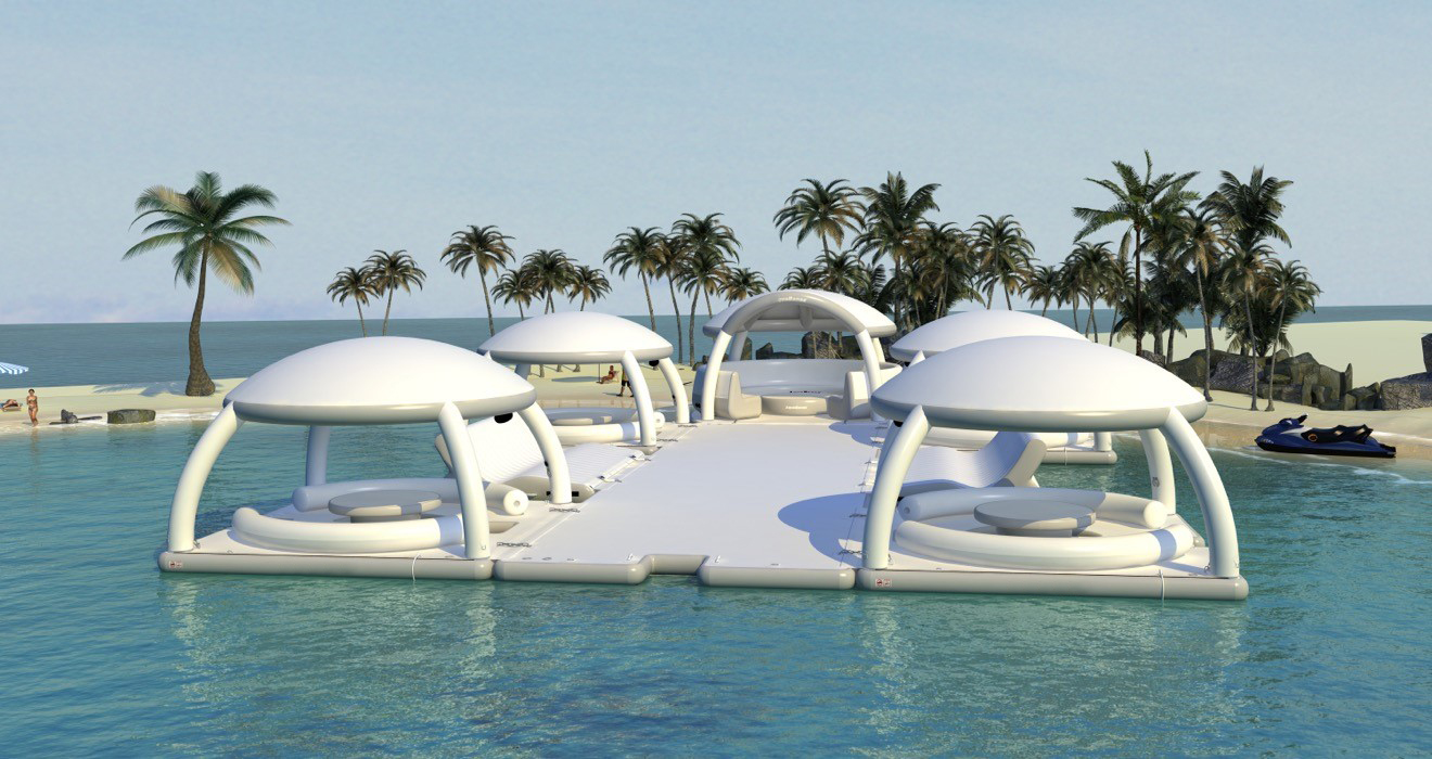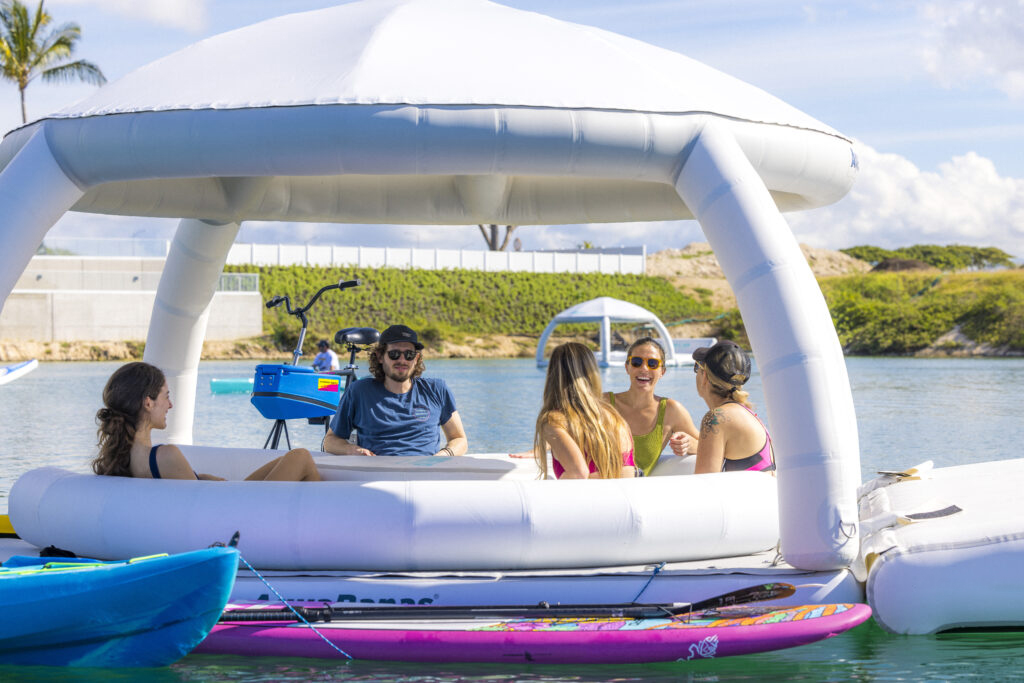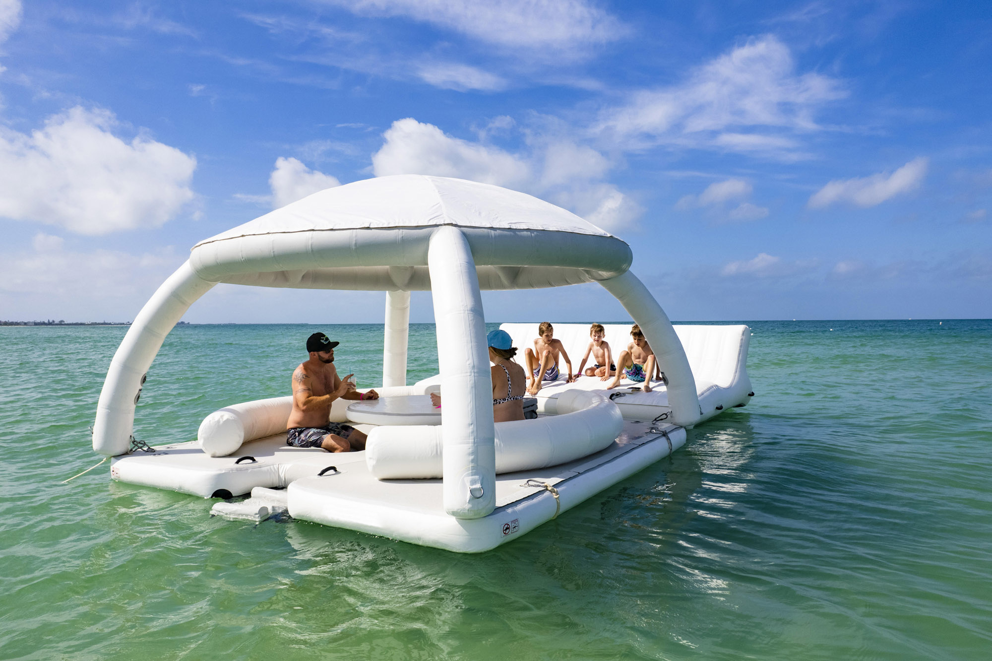 Το Cabana Island τραβά την προσοχή από οπουδήποτε στο νερό. Η γρήγορη πρόσβαση και η αντιολισθητική επιφάνεια διευκολύνουν άτομα κάθε ηλικίας να επιβιβαστούν και να μετακινηθούν γύρω του. Μπορεί να λειτουργήσει σε μόλις 50εκ νερού και να προσφέρει εκπληκτική σκιά όταν συνδυάζεται με τη σκηνή.