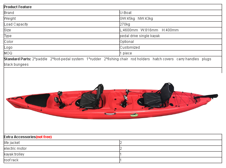 Εύκολα ανασυρόμενο / αφαιρούμενο στήριγμα Πεντάλ με εύκαμπτα πτερύγια 6.0m2 ιστιοφόρο με ιστούς δύο τεμαχίων Καρέκλα ψαρέματος με πλαίσιο αλουμινίου Κουπιά δύο τεμαχίων Πλήρες σύστημα πηδαλίου Ενσωματωμένο, πλήρως ανασυρόμενο, κεντρικό πίνακα Όλο το υλικό καλωδίωσης και ιστιοπλοΐας Μεγάλη μπροστινή πόρτα αποθήκευσης Πίσω χώρος φορτίου με bungee Δύο αδιάβροχες πόρτες σφράγισης 8'' Βάση ποτηριού Λαβές μεταφοράς Περιλαμβάνονται πολλαπλά βύσματα και κουμπιά |